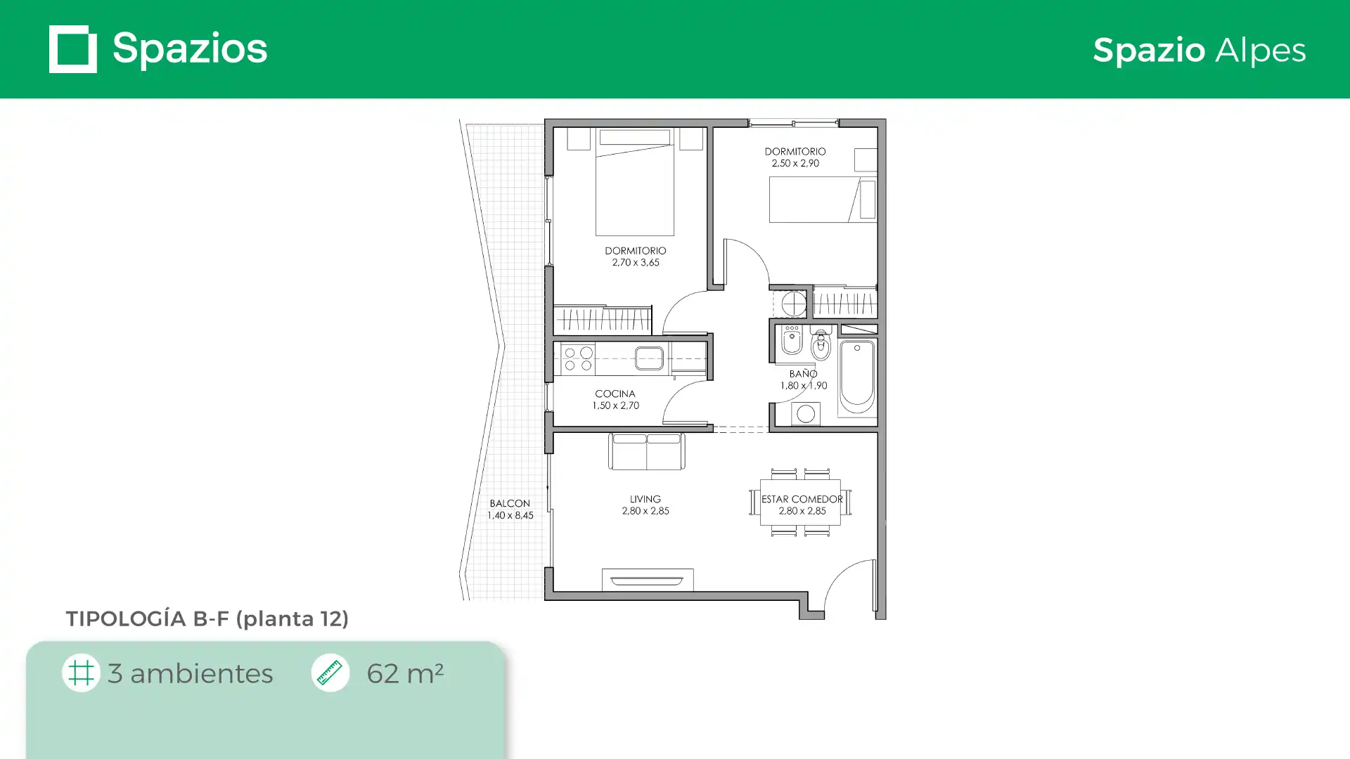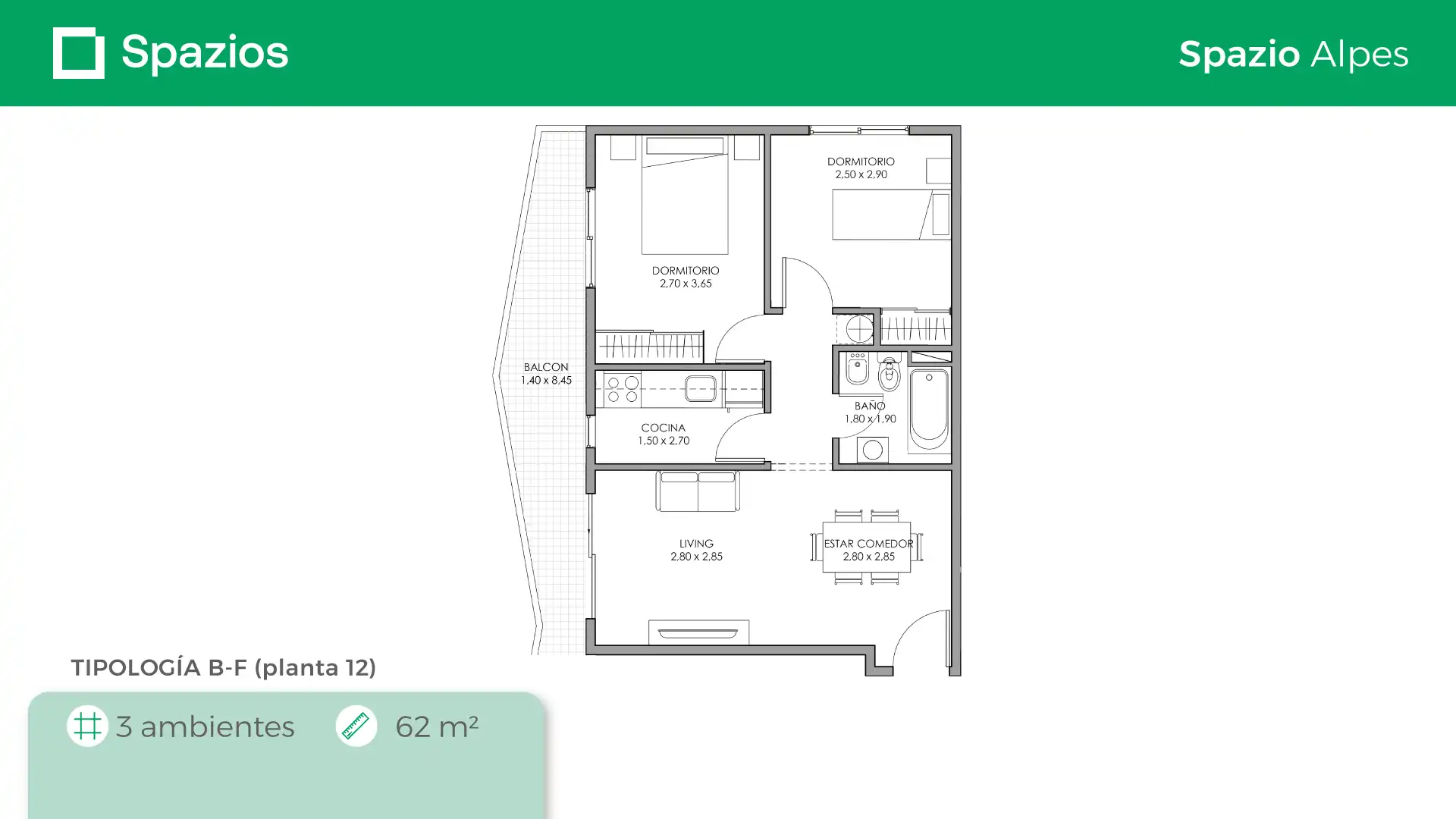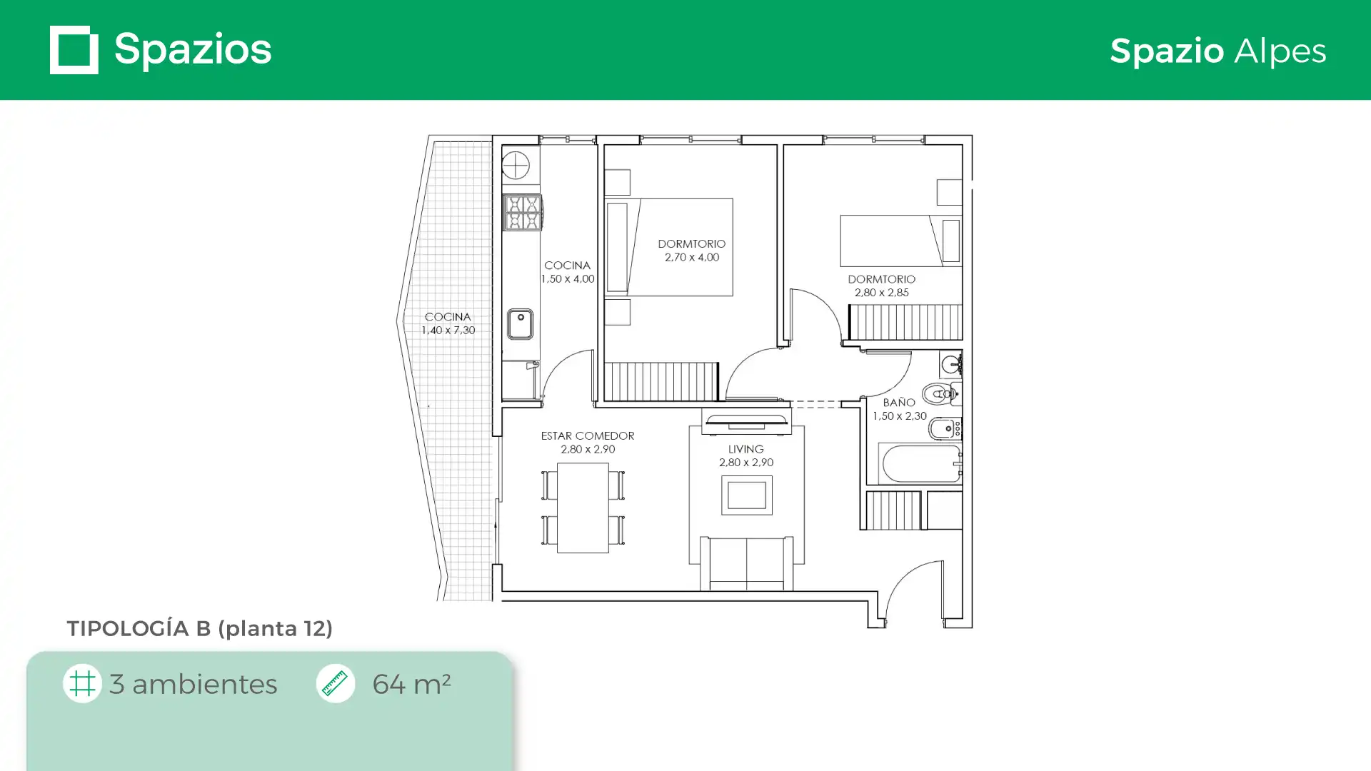Spazio Alpes cuenta con 12 pisos y se encuentra ubicado en Caseros, en la calle Gral. Manuel Belgrano 4320. Está a 4 cuadras de la Av. San Martín y a 7 cuadras de la estación Caseros de la línea San Martín. Como todos nuestros complejos residenciales, Spazio Alpes tiene un arte inigualable y vivir en el representa una oportunidad única de precio y calidad.