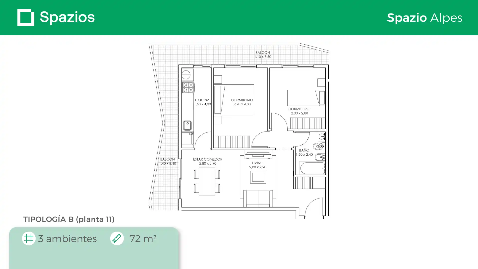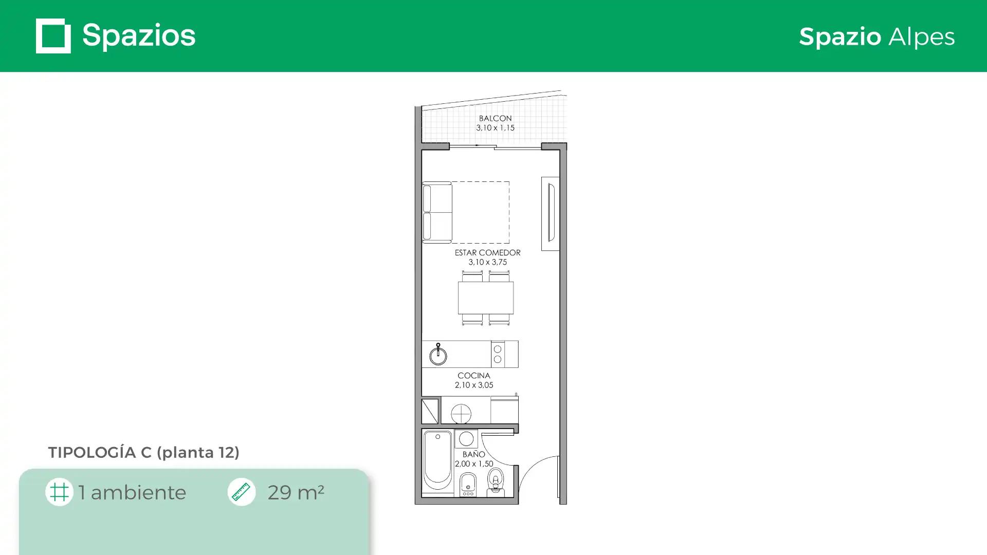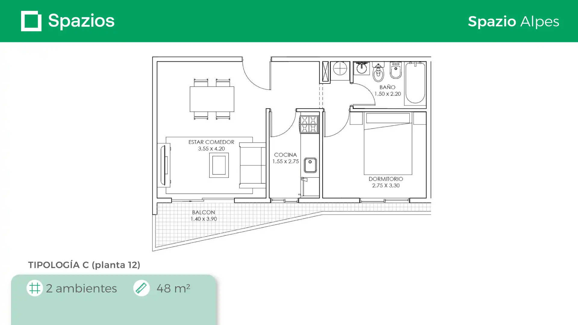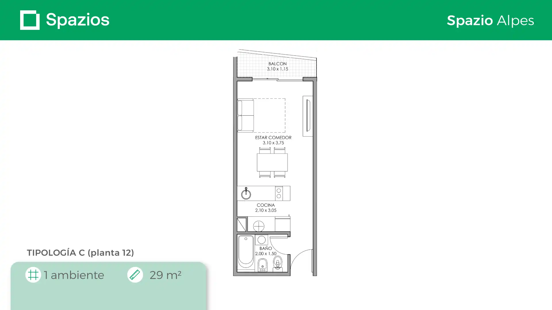 Spazio Alpes cuenta con 12 pisos y se encuentra ubicado en Caseros, en la calle Gral. Manuel Belgrano 4320. Está a 4 cuadras de la Av. San Martín y a 7 cuadras de la estación Caseros de la línea San Martín. Como todos nuestros complejos residenciales, Spazio Alpes tiene un arte inigualable y vivir en el representa una oportunidad única de precio y calidad.
