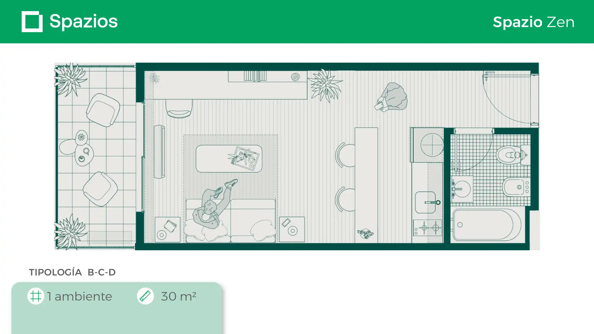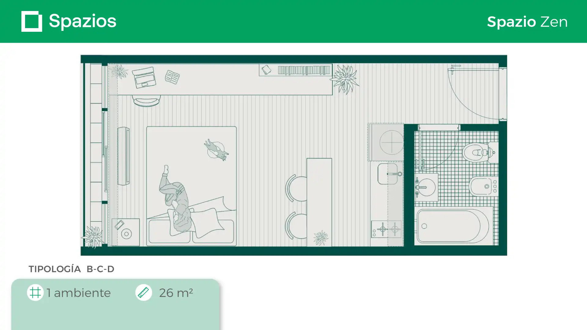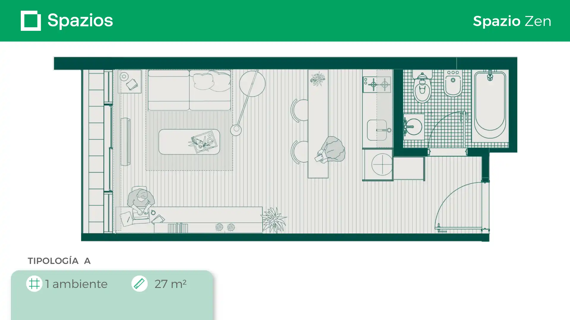 Spazio Zen cuenta con 10 pisos y se encuentra ubicado en Caseros, en la calle Belgrano 4445. Este emprendimiento está en un punto estratégico a sólo 2 cuadras de la Av. San Martín, rodeado de varios centros comerciales y gastronómicos. El concepto de orden se aborda en el proyecto mediante la utilización de elementos configurados según filosofías orientales que operan de forma particular, generando momentos y recorridos en donde la luz es el elemento principal.