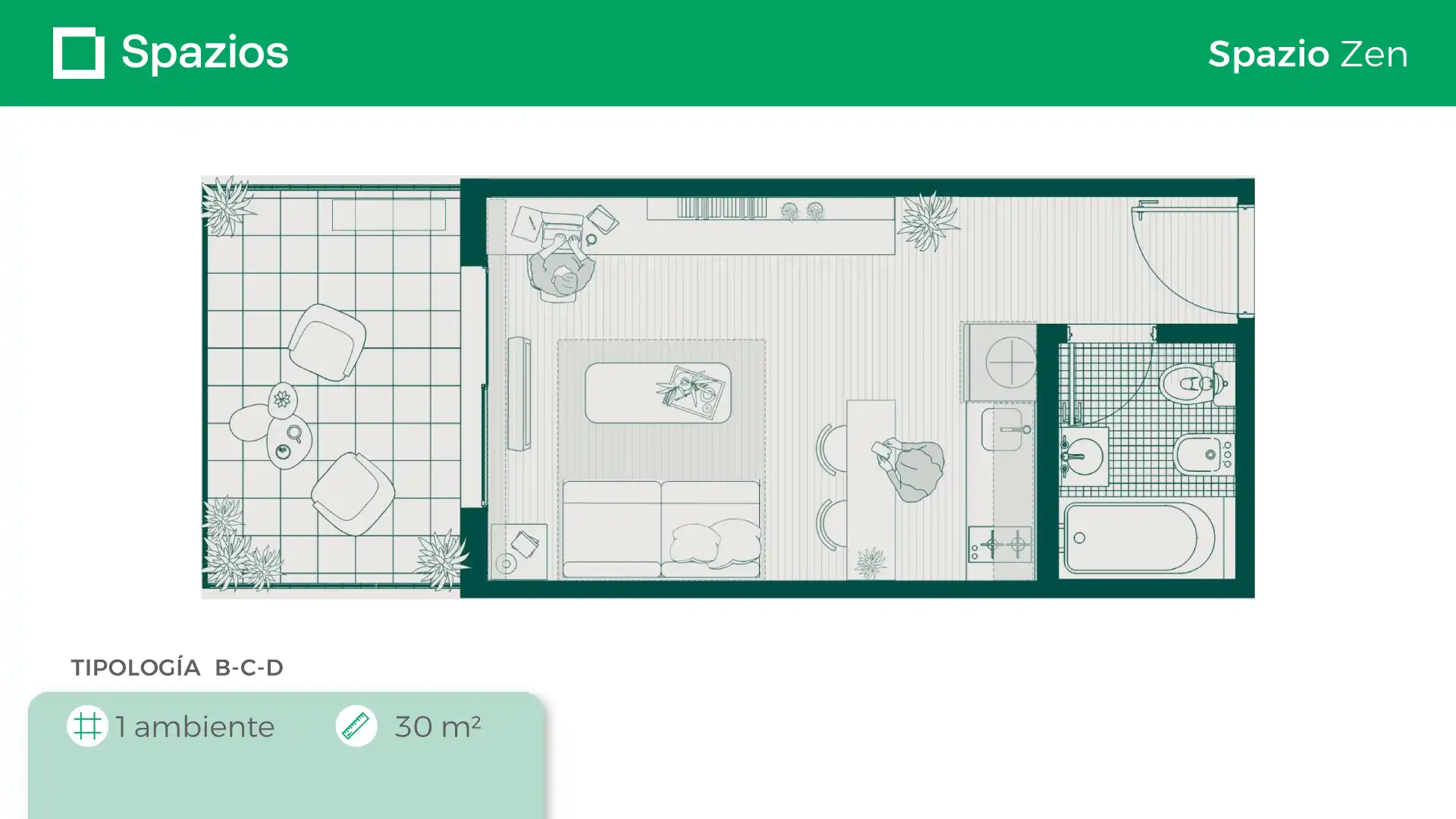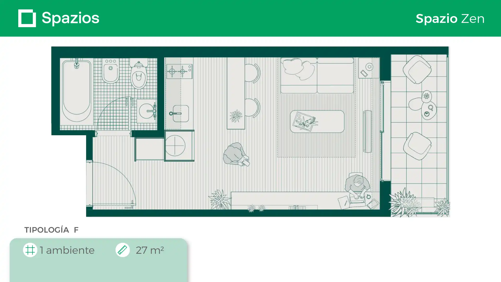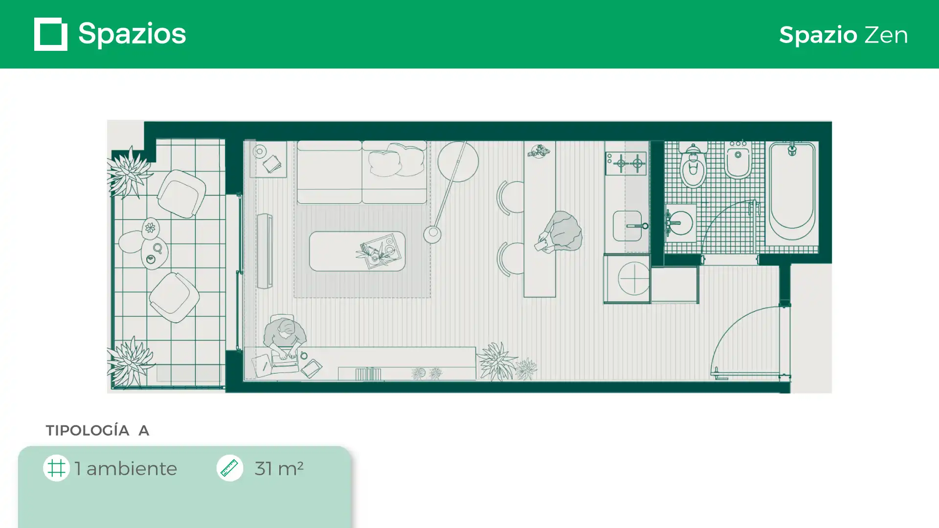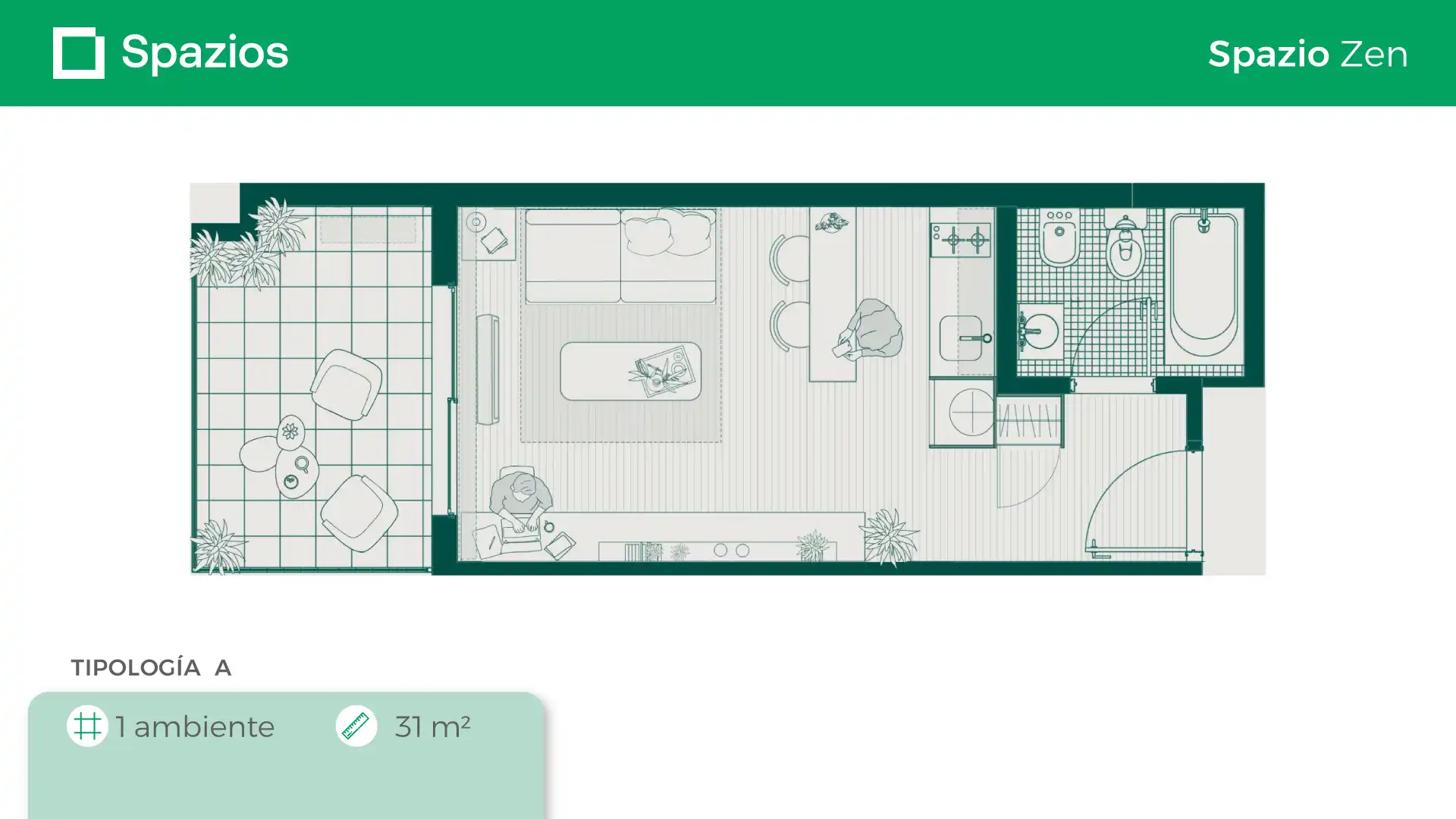 Spazio Zen cuenta con 10 pisos y se encuentra ubicado en Caseros, en la calle Belgrano 4445. Este emprendimiento está en un punto estratégico a sólo 2 cuadras de la Av. San Martín, rodeado de varios centros comerciales y gastronómicos. El concepto de orden se aborda en el proyecto mediante la utilización de elementos configurados según filosofías orientales que operan de forma particular, generando momentos y recorridos en donde la luz es el elemento principal.
